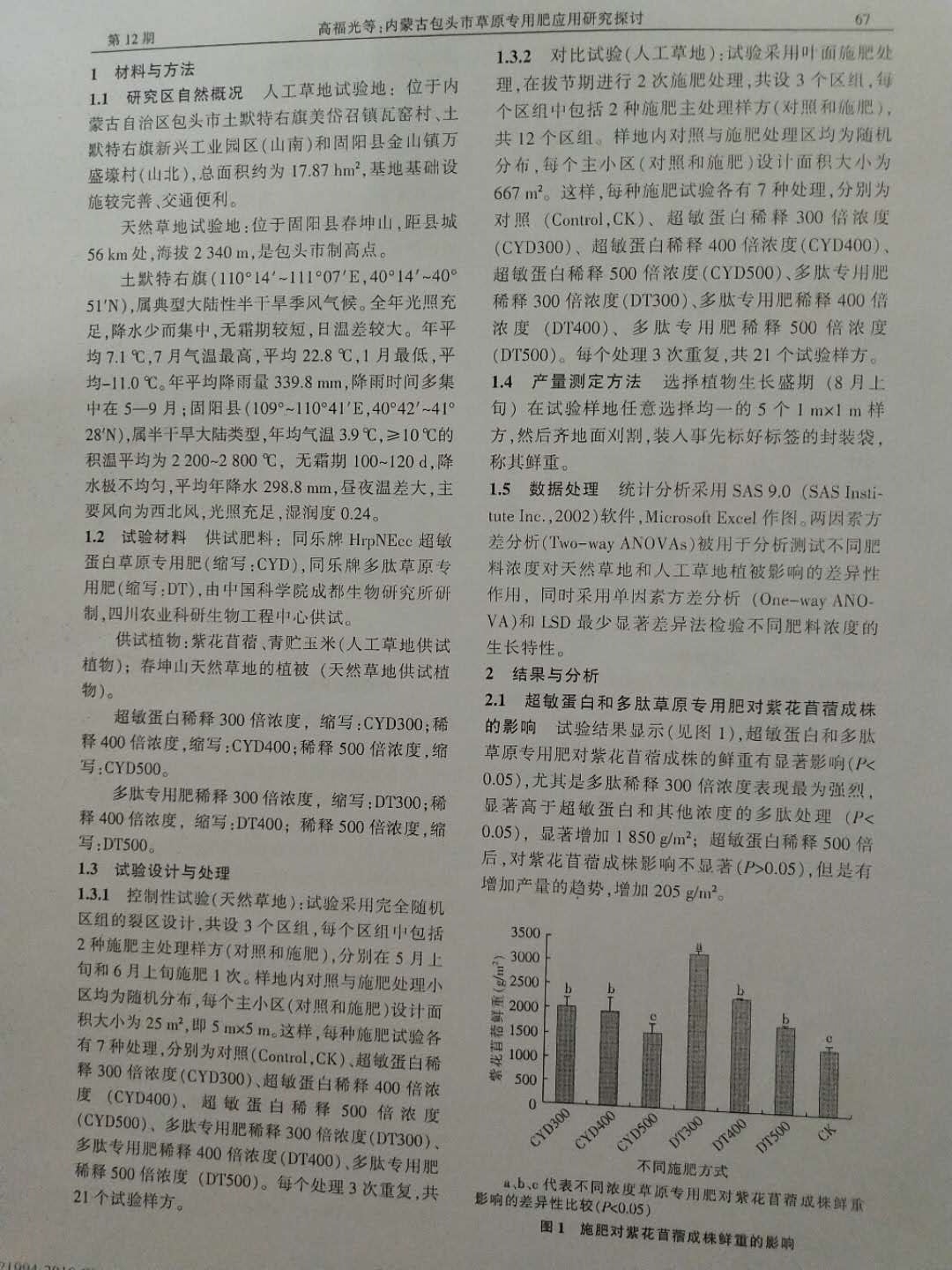 內蒙古包头市草原站《包头市草原专用肥应用研究初探》发表时间2017年12月
