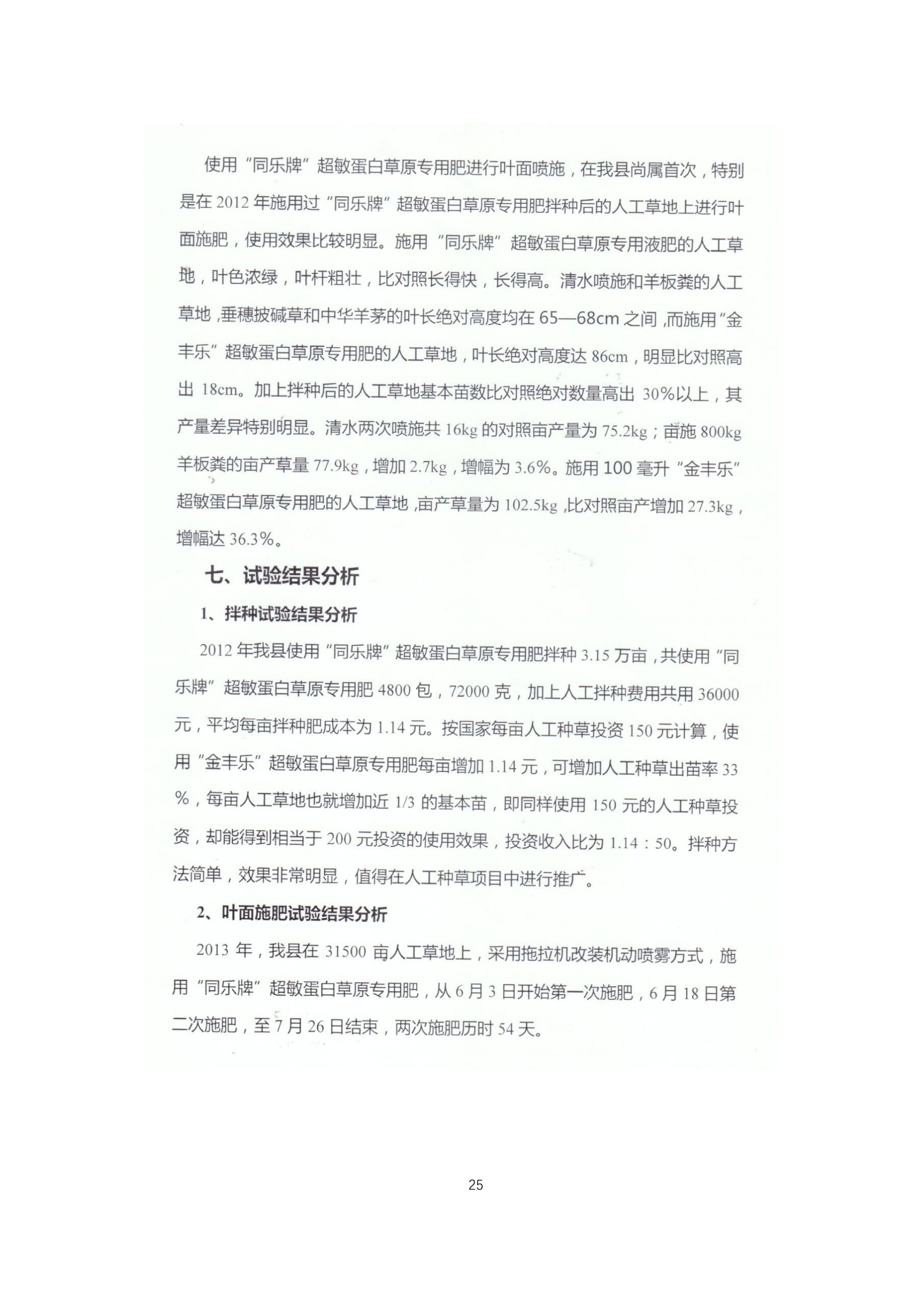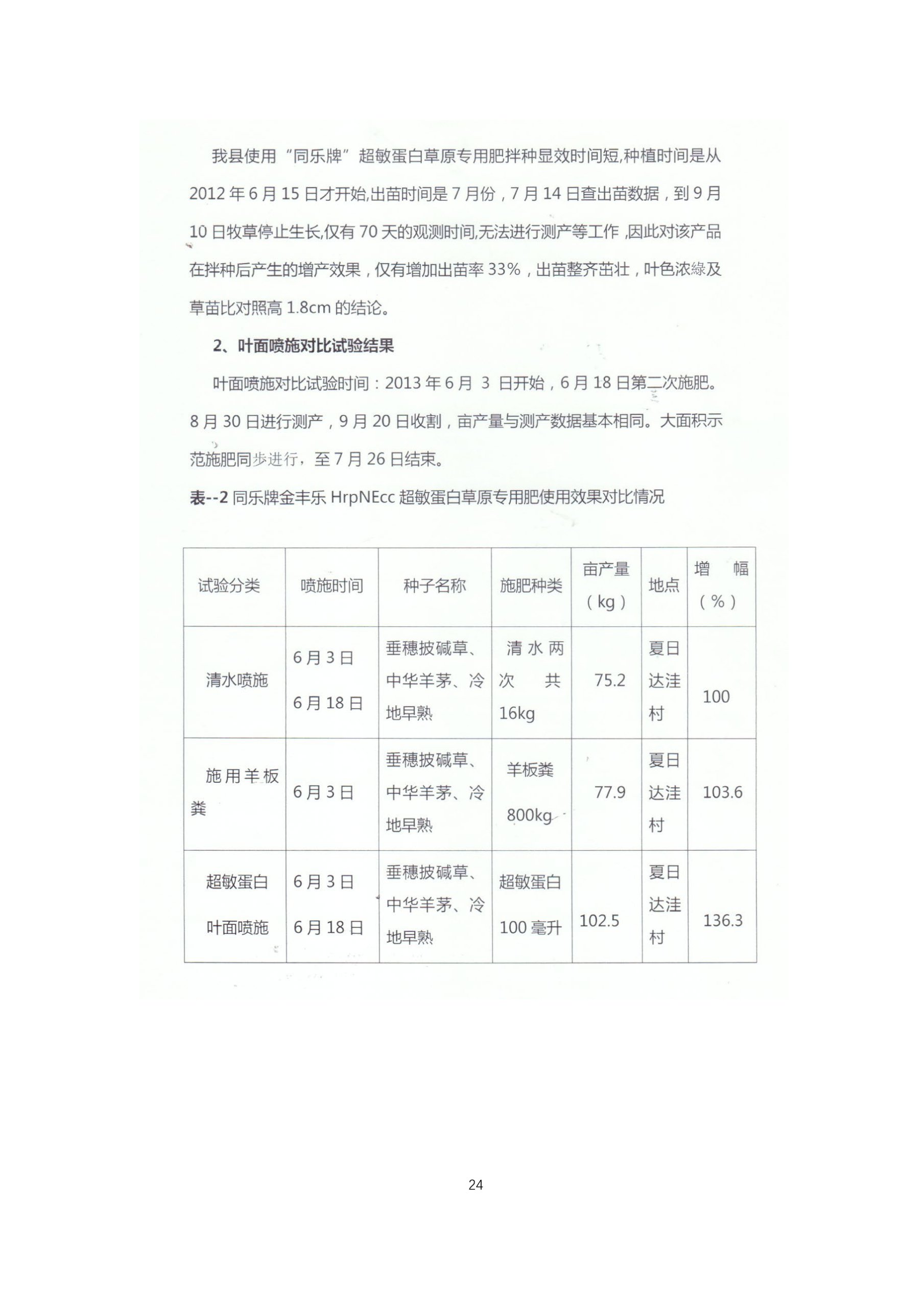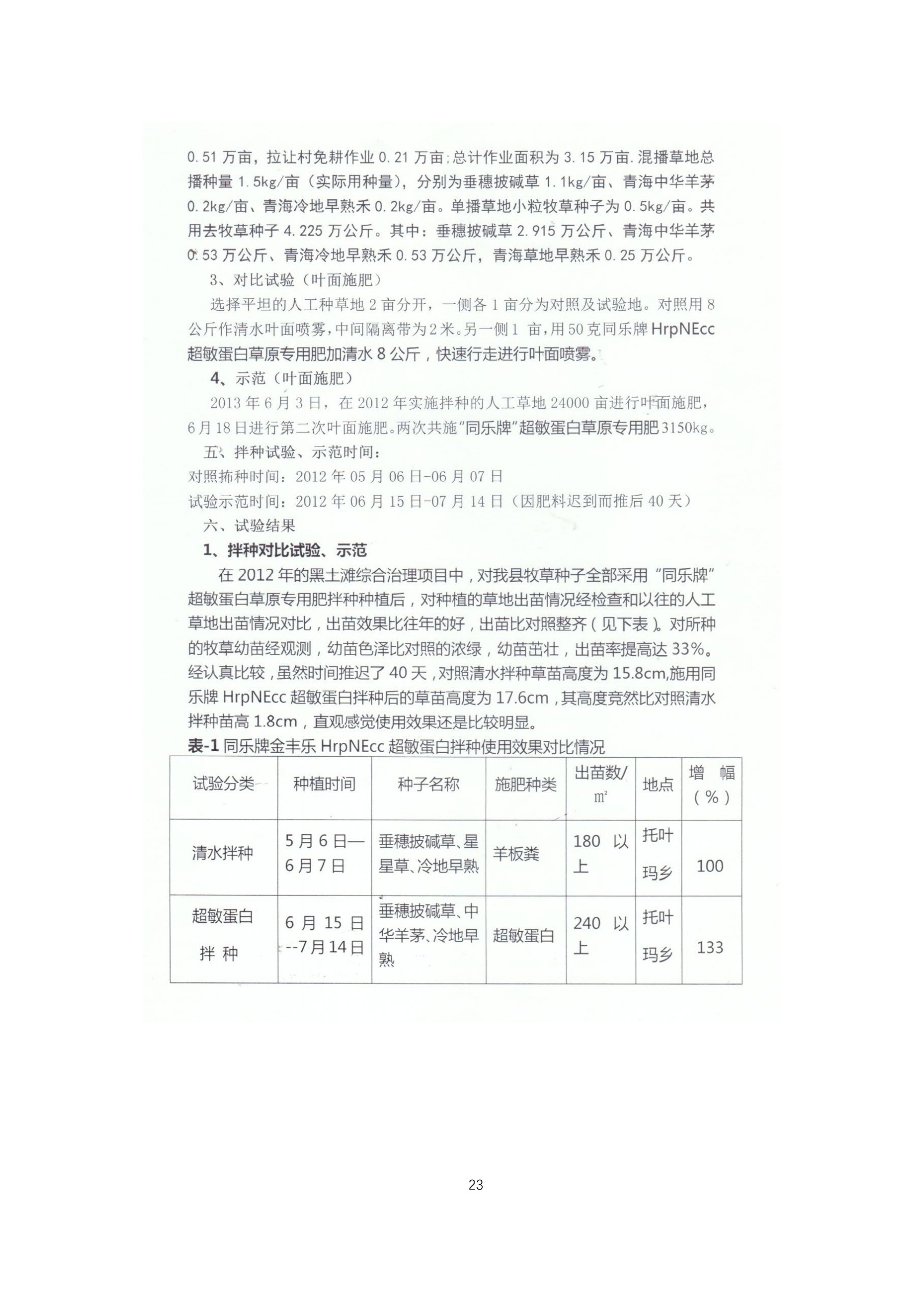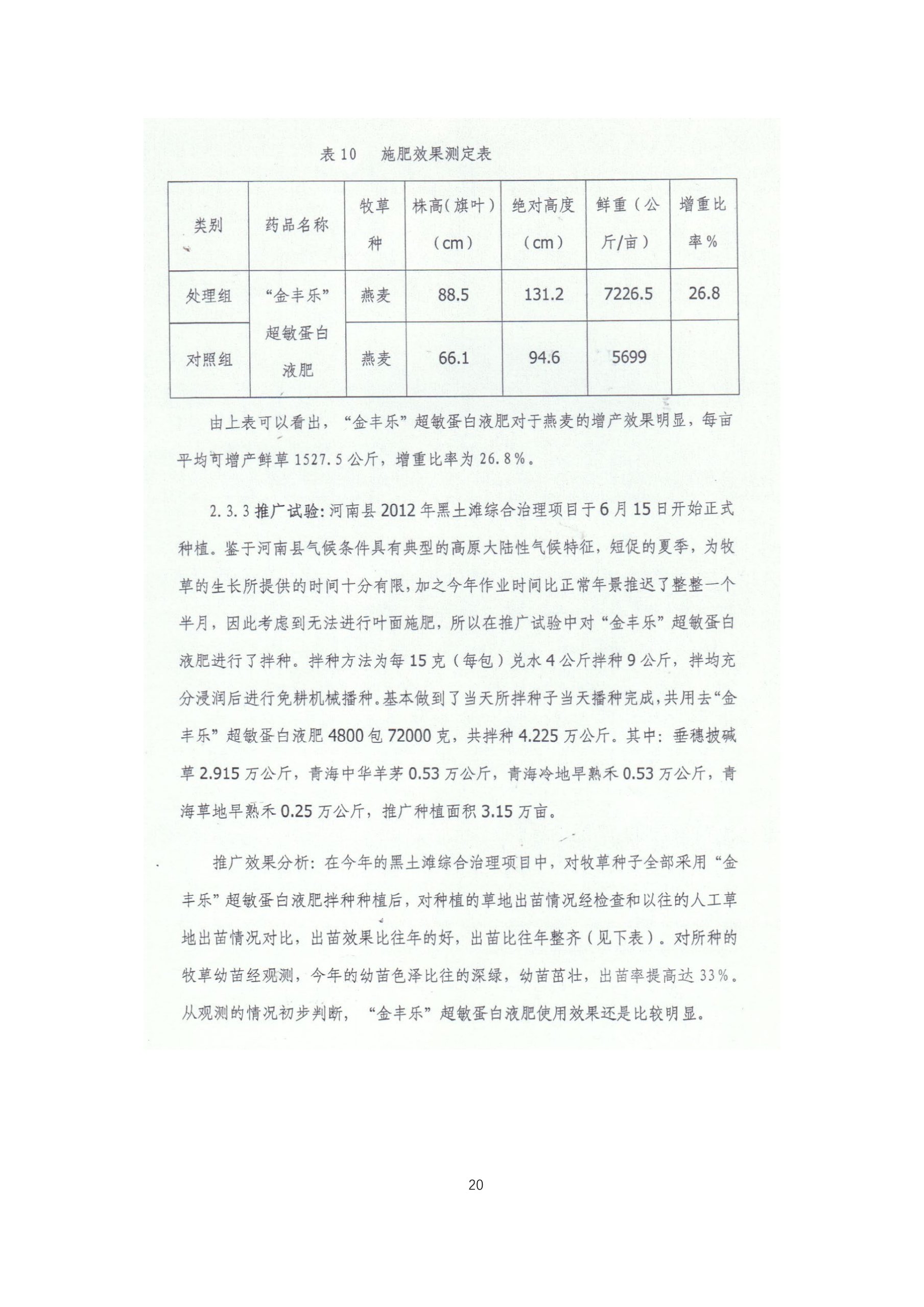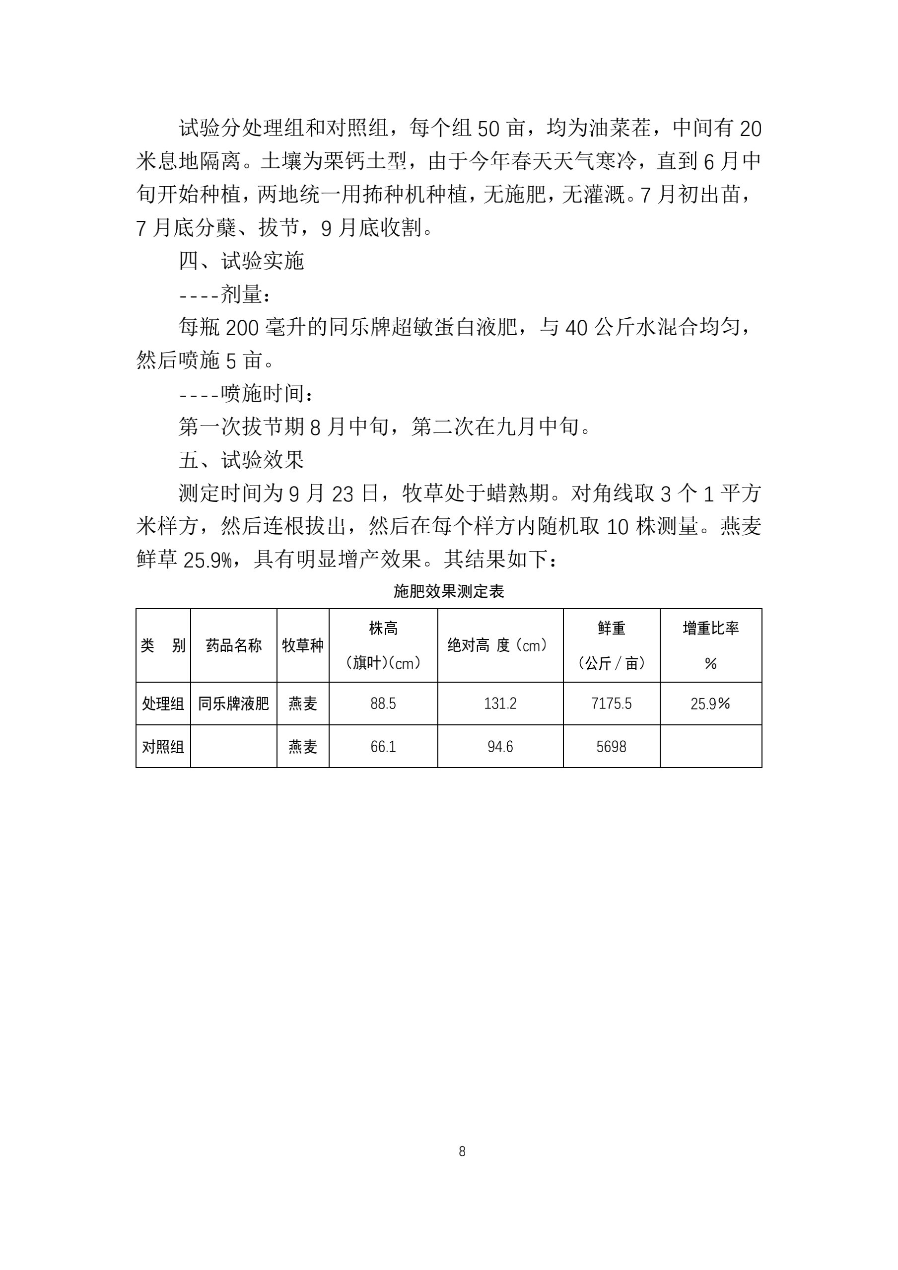 蛋白多肽草原专用肥在牧草上的试验示范报告