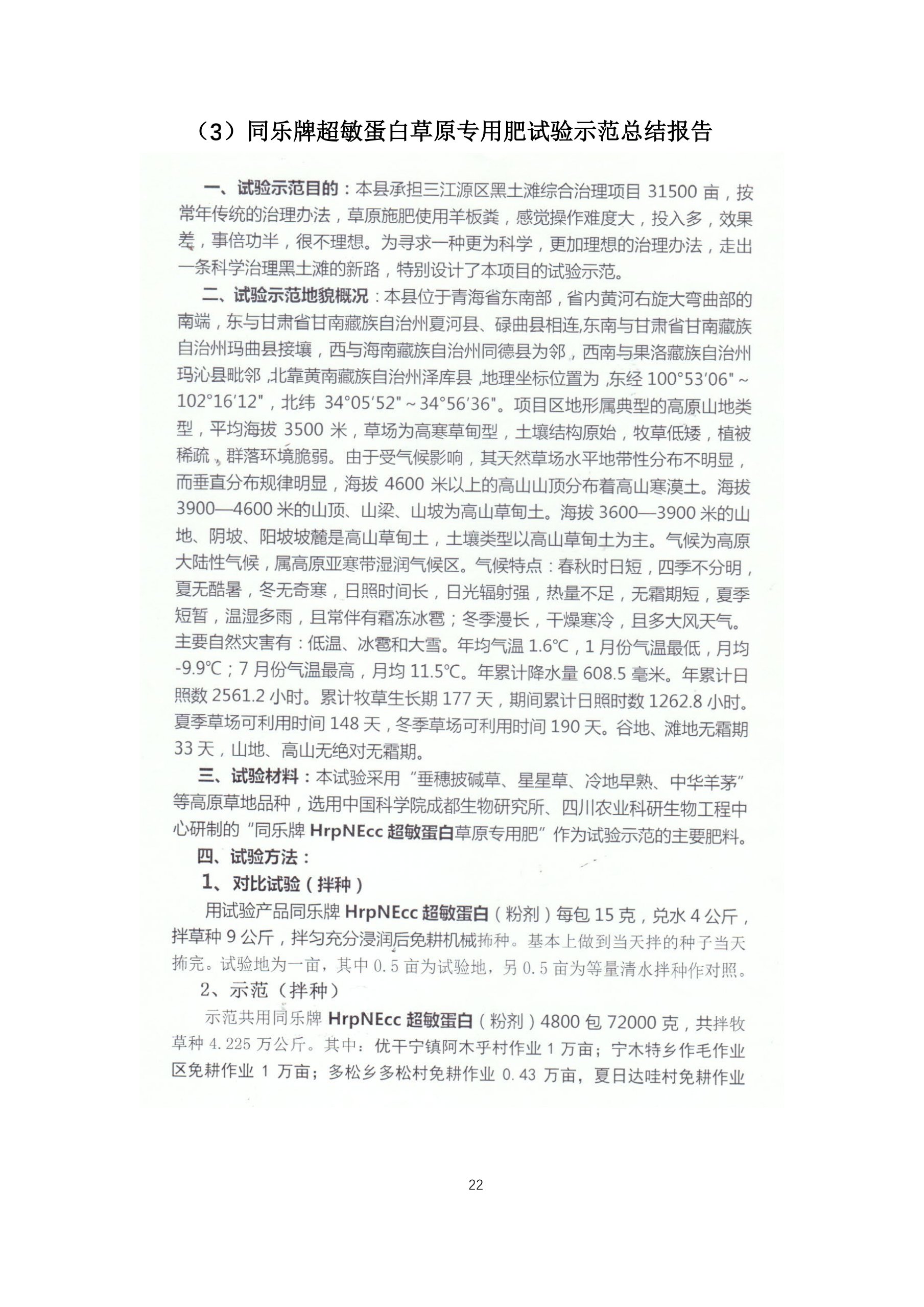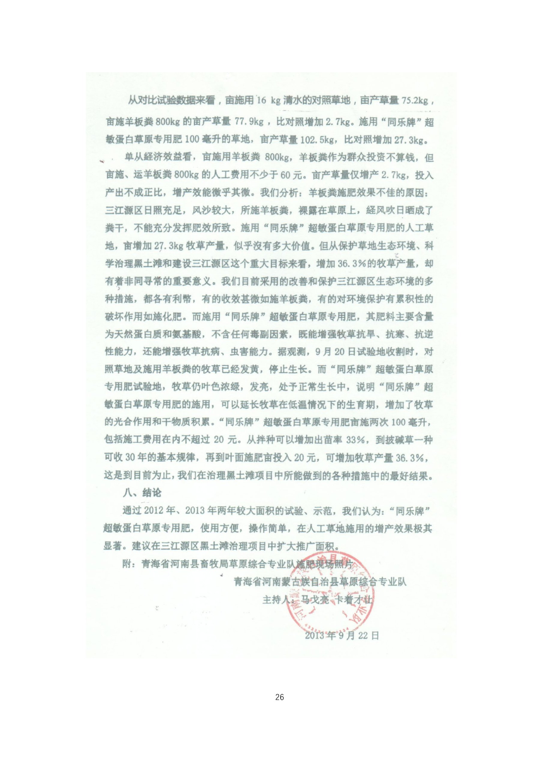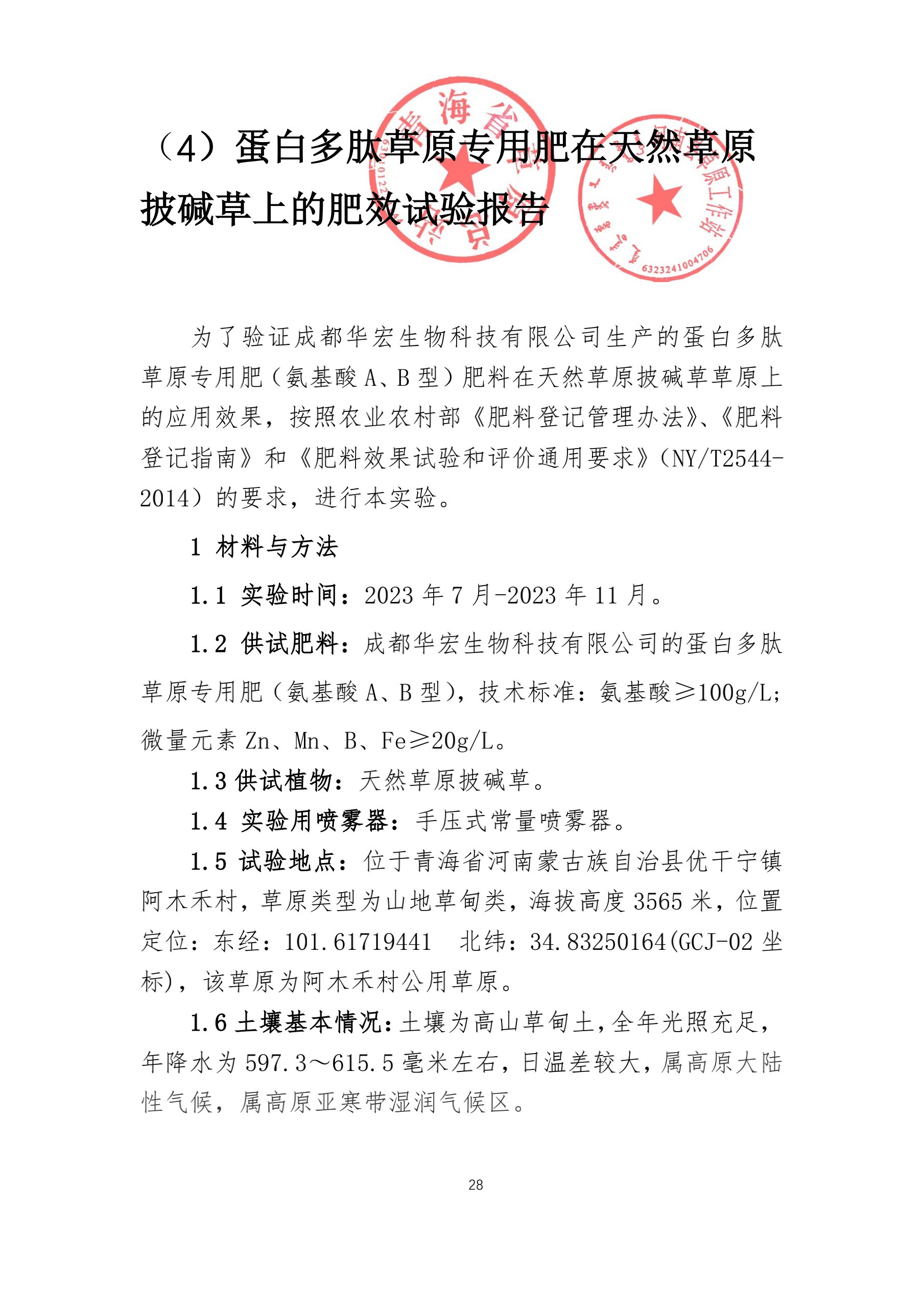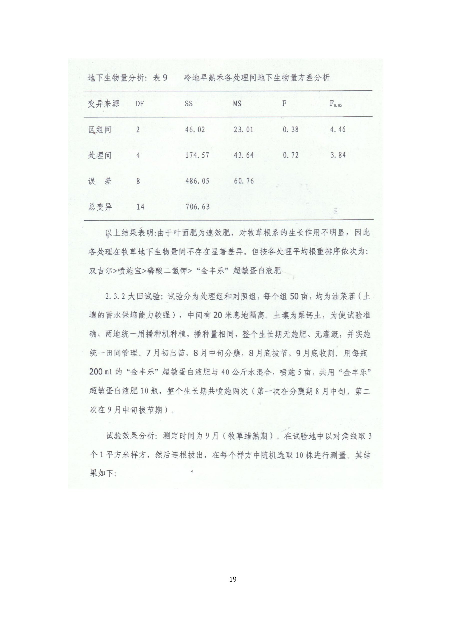 蛋白多肽草原专用肥在牧草上的试验示范报告