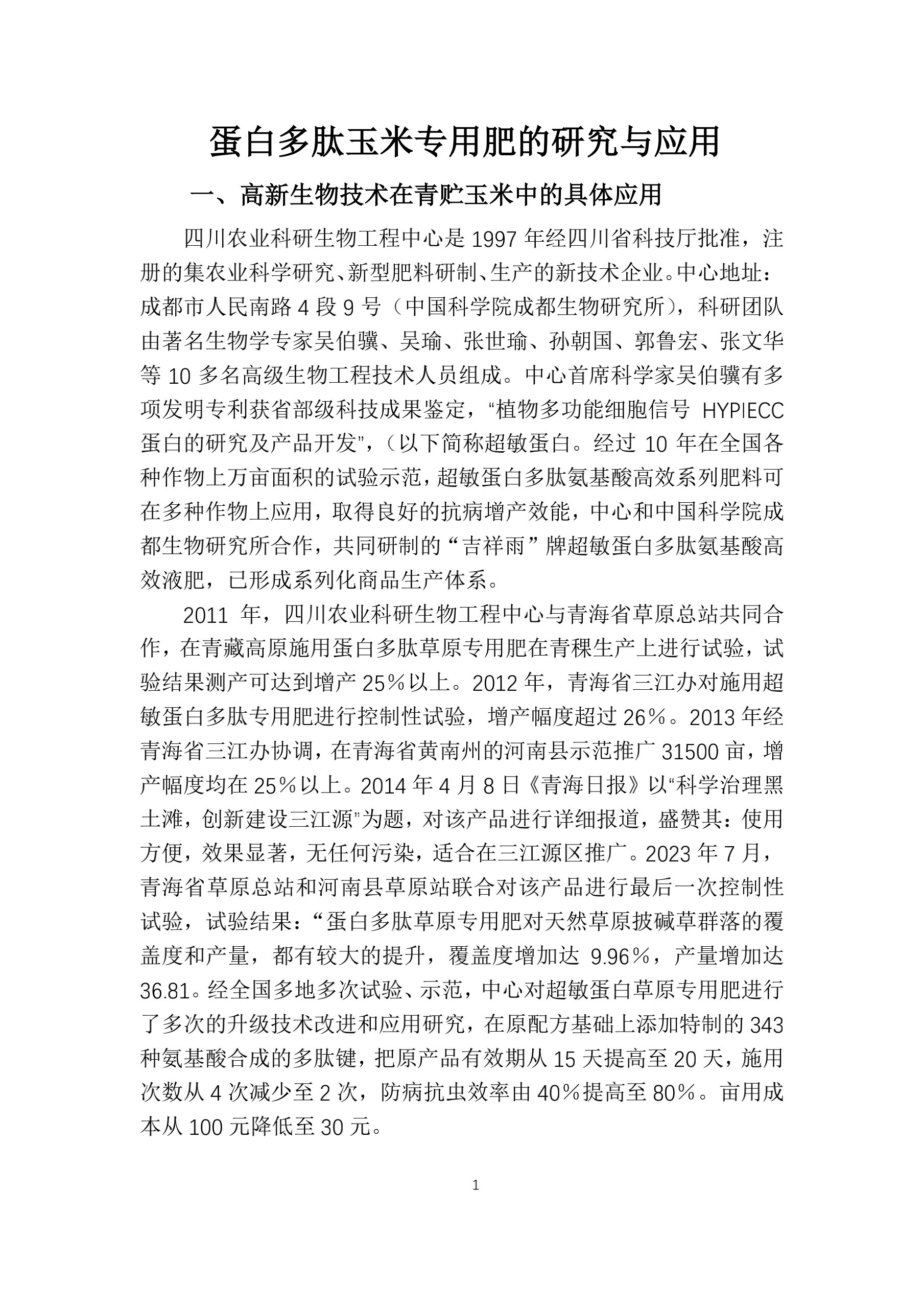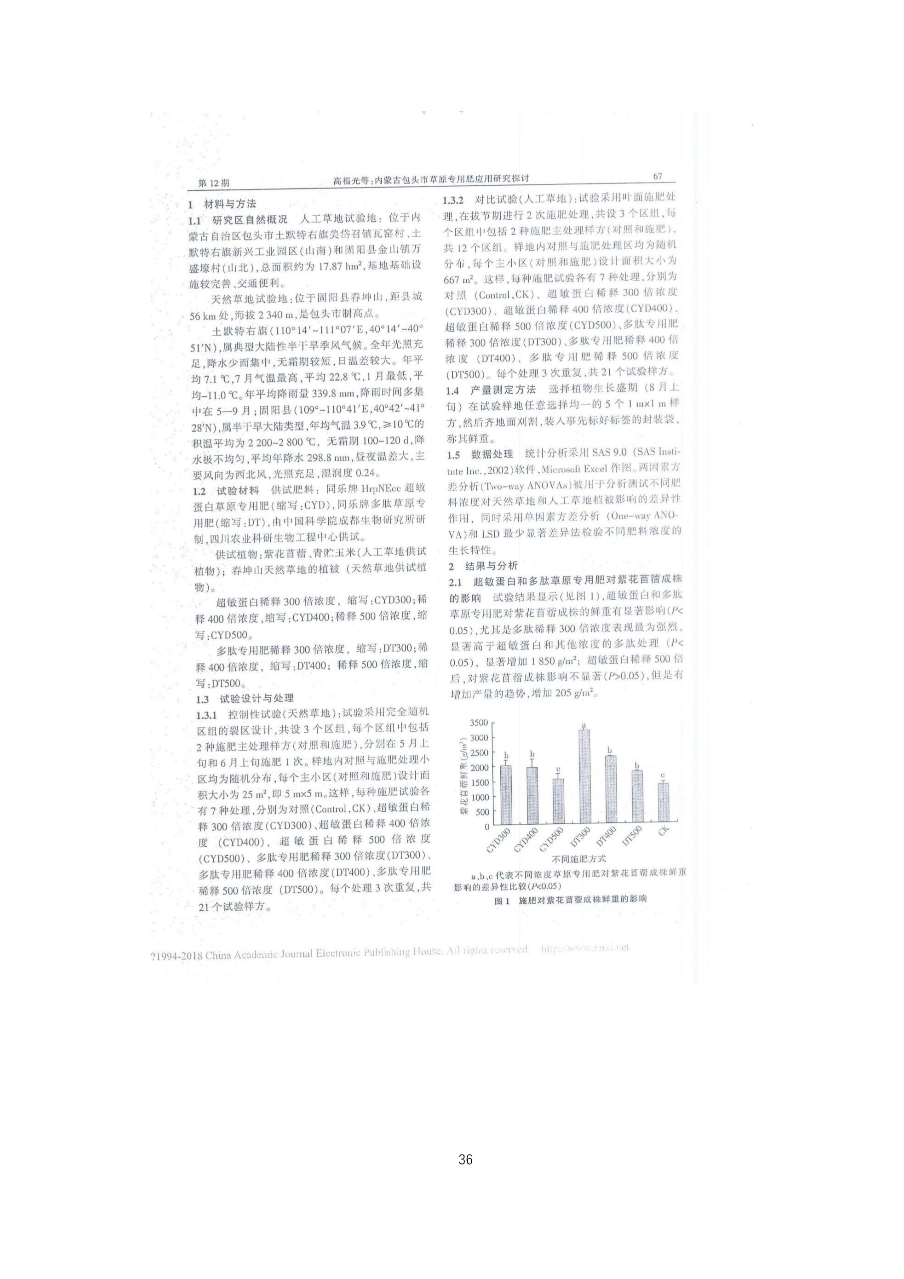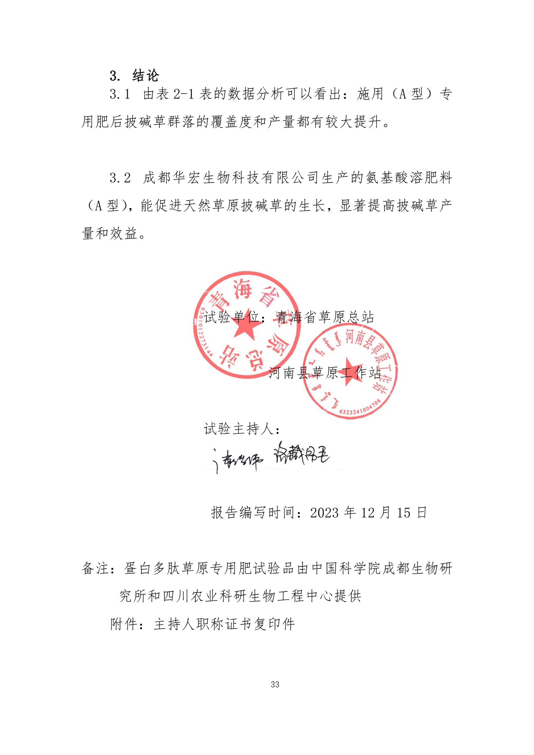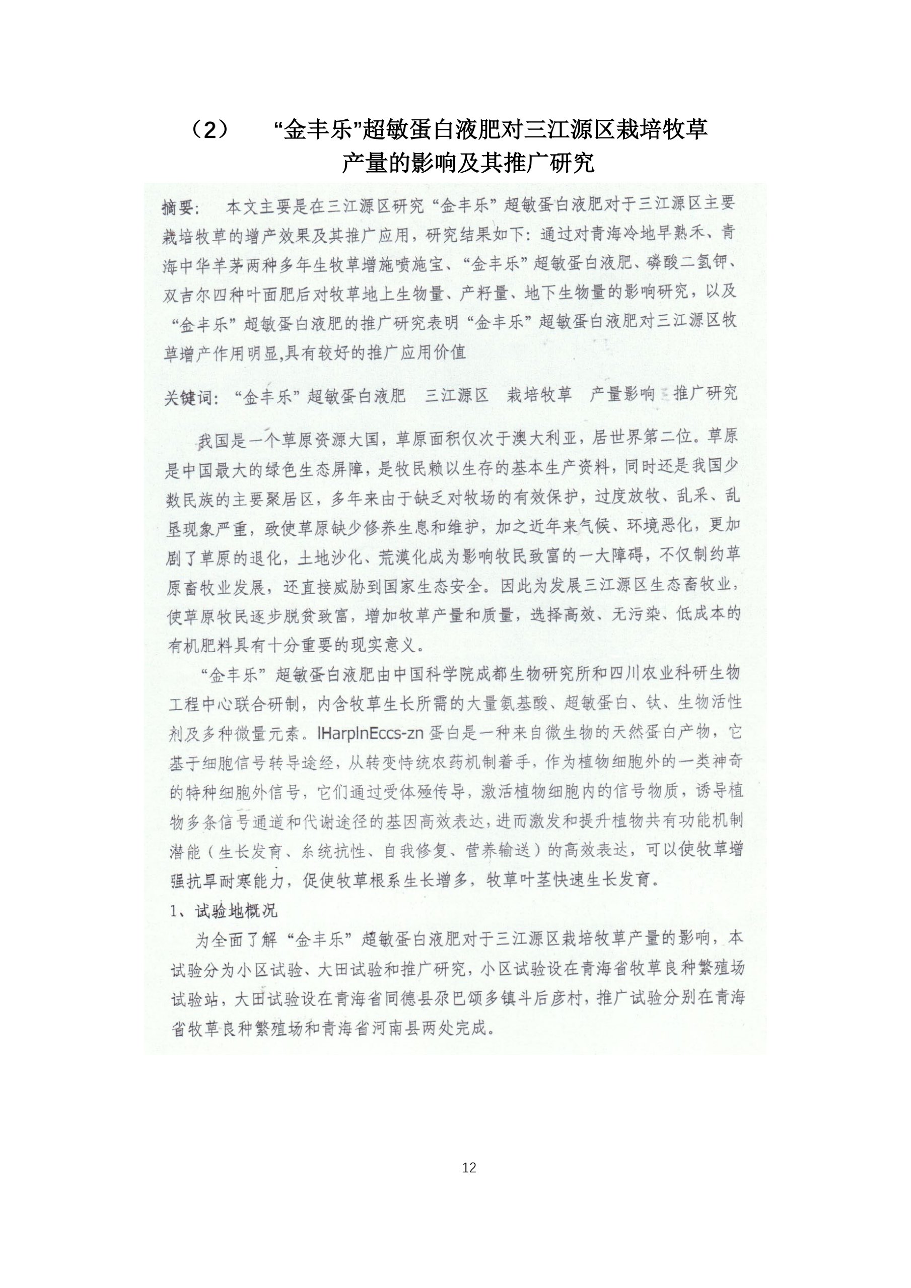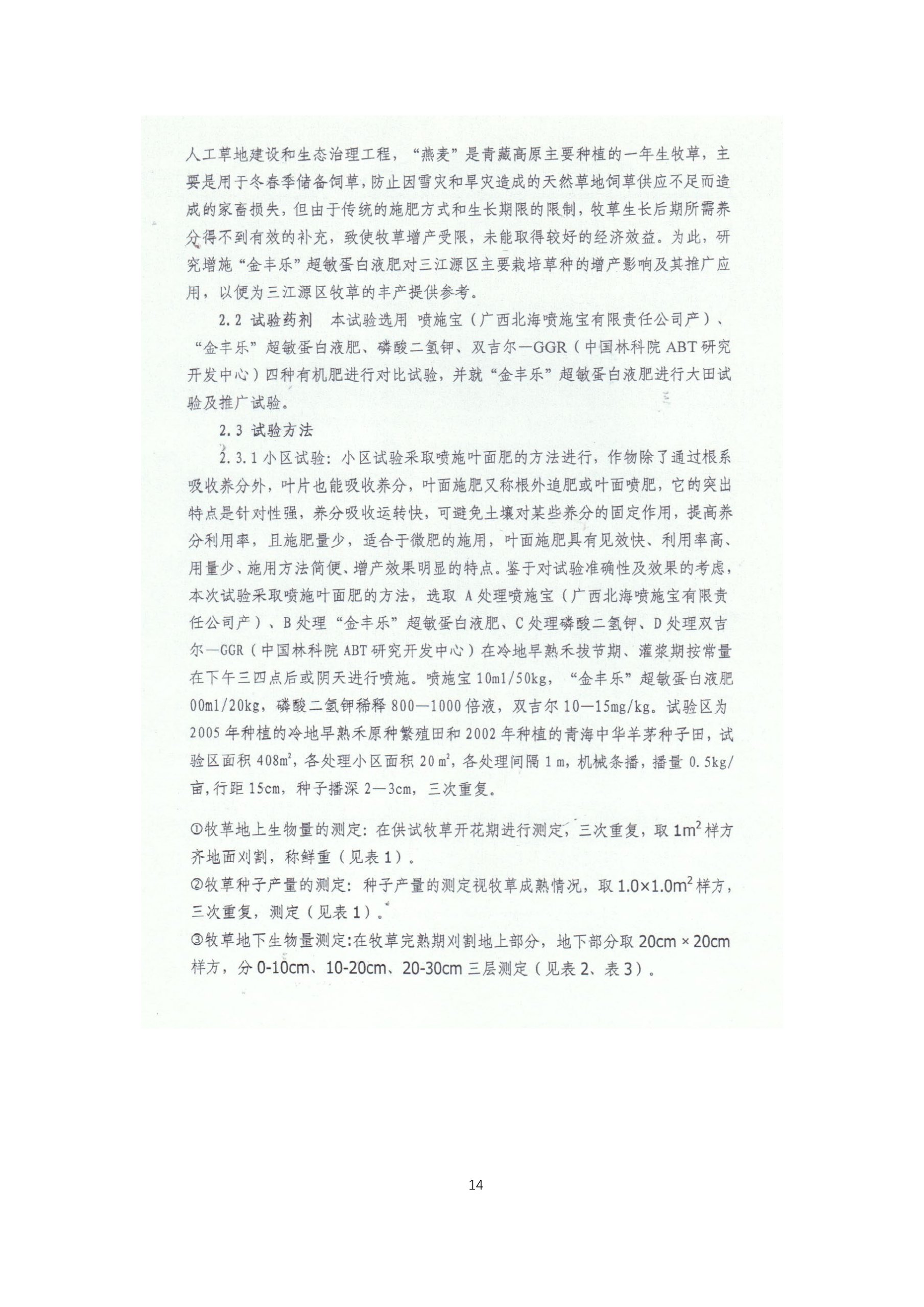 蛋白多肽草原专用肥在牧草上的试验示范报告